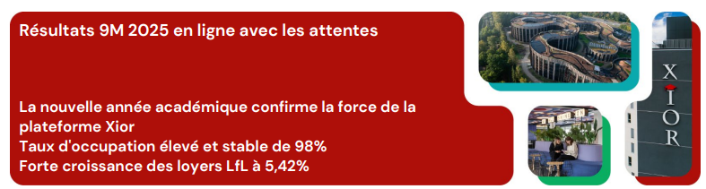 - Croissance des loyers LfL +5,42% (YoY) et taux d'occupation de 98% confirment la force des l’immobilier étudiant